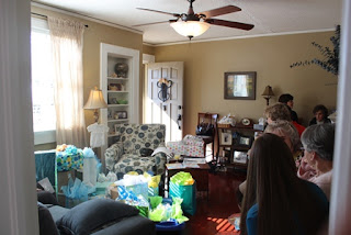 Today we had a family baby shower for Whitney and Brent and Baby Parker! It was the perfect time to have this at my house because I was forced to do some cleaning and organizing! My mom did all of the decorating and a lot of the cooking. My aunts and cousins also helped out. Whitney and Brent got lots of great stuff. Here are just a few pictures. I didn’t get as many as I wanted to. ( Invitations by Milestone Designs and flowers by Electric City Blooms)